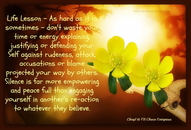 If we automatically re-act and attack or re-act to an attack and put ourselves in a situation upon being attacked where we do defend, justify and attack back we are just feeding a fire – yet when we remain silent that fire has no oxygen as such to keep it burning. It usually just dies down, for it runs out of the fuel (energy) needed to feed it and keep it burning and in the dying down you or I, or the person who was coming from the space of “you”, can, if they choose to, take a look at themselves in the mirror they were projecting themselves onto that is now non-responsive and just reflecting themselves back to themselves fully for them to clearly see and hear themselves.   This then becomes a huge gift for the attacking or blaming person to take a long hard look at their own projections, insecurities, justifications, stories, fears and emotional re-actions should they choose to do so.