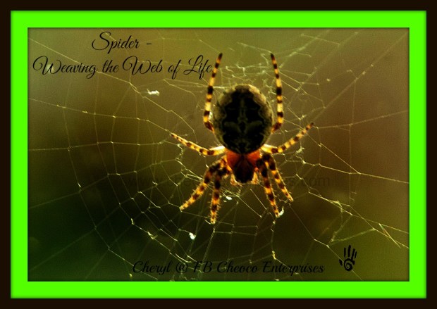 Not everyone’s favourite critter and certainly not mine BUT Spider is symbolic of much. Spider is said to have woven the first primordial alphabet. So can be about writing. Spider speaks of our connection to all that exists in the world wide (universal) web. Spider’s body is shaped like a figure 8 – symbol for DNA and her 8 legs are said to symbolise the four directions and the four winds of change.Spider can be a warning message to not get caught up in our own illusions of ourselves and the physical world. Spider is also about creating and her web is said to represent the wheel of life to which we are all bound.