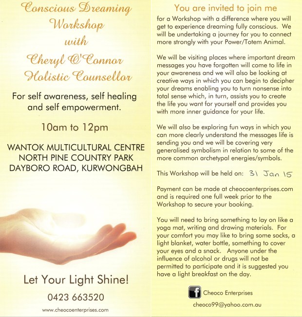 Newsletter Subscription @ bit.ly/CheocoNews – All subscribers receive my free Dreamwork Ebooklet – 33 tips and tricks designed to assist you in relation to becoming more conscious of your dreams and ways to work with dreams and synchronicity.