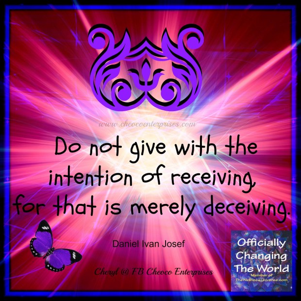So many times I have seen folk who give with the expectation of receiving – it rarely turns out well for when they don’t receive from who they expect to receive from, they become disappointed, resentful and think well why the heck should I help you in future when you need help, when you can’t be bothered to help me.   Often this turns into a situation of people feeling obliged to help so as not to create difficulties in friendships, lose friendships or lose connections with other folk, or for whatever other reason people have for feeling obliged and acting out of obligation, not for the love and passion of doing something.